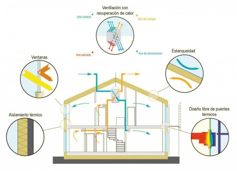 Una casa pasiva es una casa que está construida teniendo muy en cuenta las condiciones climáticas y geográficas de cada emplazamiento con una buena orientación, captación y protección de la radiación solar, un alto grado de aislamiento de la envolvente sin puentes térmicos, y una buena estanqueidad del aire exterior de toda la edificación con carpinterías de alta eficiencia energética, para así conseguir garantizar la mínima demanda energética que, posteriormente, se completará con la correcta elección de los sistemas activos más eficientes de aportación de energía natural.